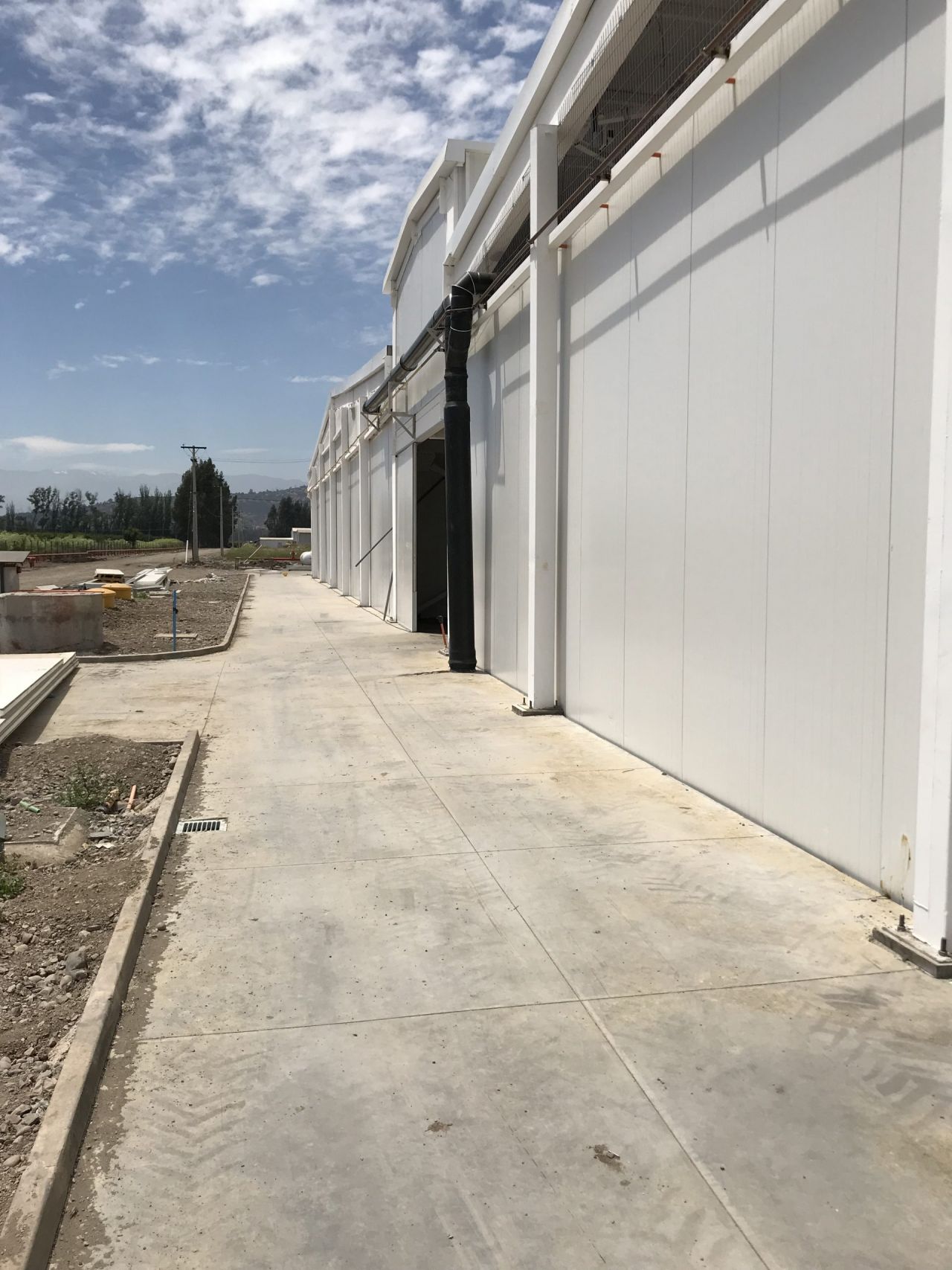 Planta de produccion para nuestro cliente Abrantes construido de la mano de constructora inspeccion tecnica DRS y constructora proyekta, cubre una superficie de 1.335,10 m2 de pisos Interlocking para cultivo y siembra de champiñoñes y 1.804,11 m2 de pavimentos exteriores TCP para transito constante de camiones de alto tonelaje, usado para la carga y distribucion de su planta de producción para la agroindustria.