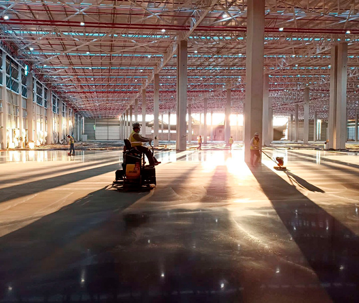 Centro de distribución para nuestro cliente Mercadolibre, construido de la mano de la constructora EBCO, esta ubicado en Quilicura y cubre una superficie de 100.300 m2 de pisos de retracción compensada, pisos diseñados para soportar una operación exigente y flexible al cambio, con esta tecnología logramos reducir las juntas de contracción en un 90%, altamente resistentes al transito de maquinaria con ruedas duras y con altos niveles de planeidad para la distribución y almacenaje en grandes alturas.