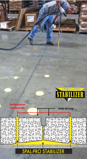 La estabilización de juntas busca eliminar uno de los problemas más recurrentes y dañinos en pisos de hormigón, el movimiento de las juntas por alabeo. Mediante la inyección de productos sólidos o expansivos se logra rellenar espacios vacíos entre el piso de hormigón y la base compactada, para evitar la deflexión vertical de las juntas frente al tránsito de cargas. Luego el proceso se combina con el tratamiento de la junta para lograr una superficie continua, sin movimiento y resistente al tránsito.