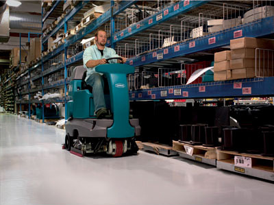 Lavado industrial se grandes superficies con equipos hombre a bordo para una mayor velocidad.