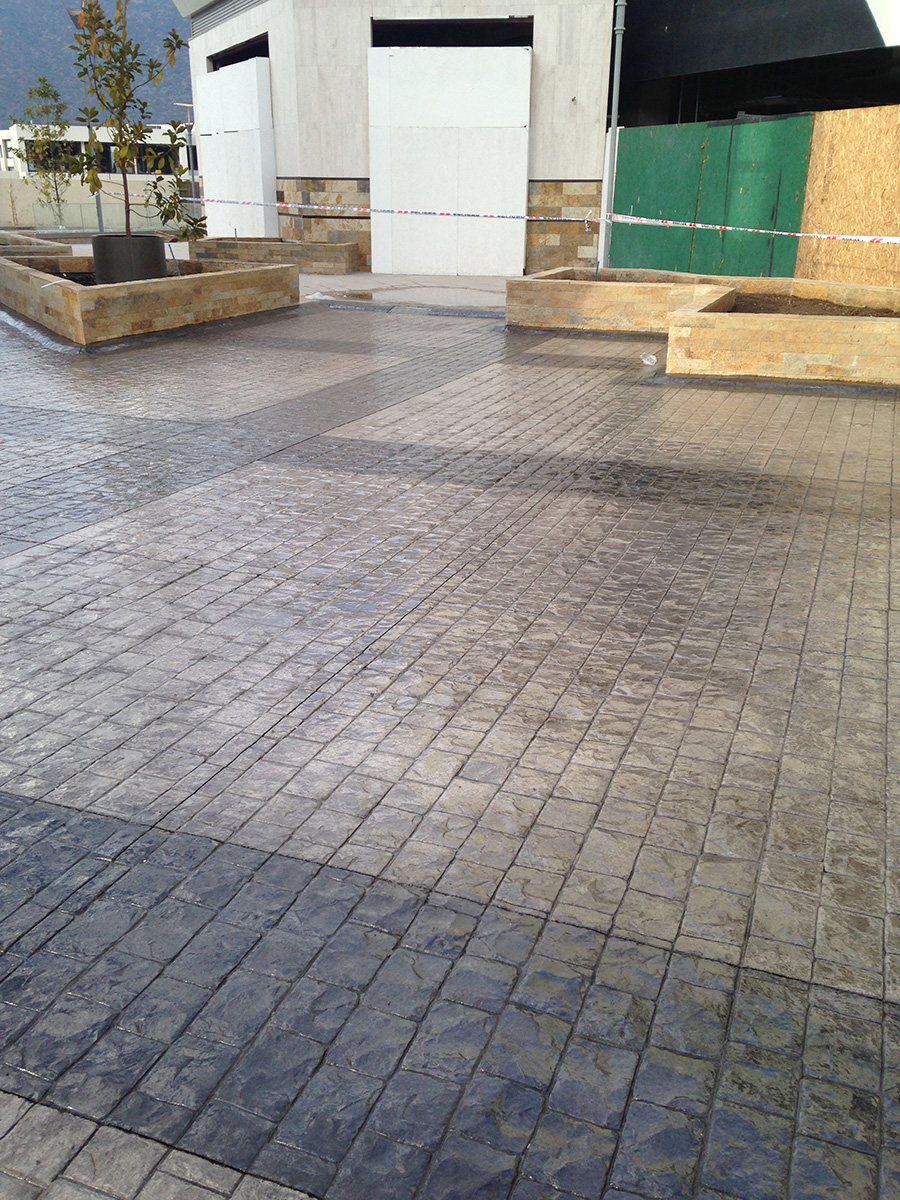 Los pavimentos estampados se ejecutan en hormigón, coloreando la superficie del mismo en su estado fresco. Luego se estampan con moldes, logrando diferentes texturas e imitando materiales como piedras, baldosas, adoquines e incluso madera. Son una solución monolítica de alta resistencia y valor estético, especiales para ser utilizadas en tránsito peatonal y vehicular, tanto en proyectos comerciales como residenciales