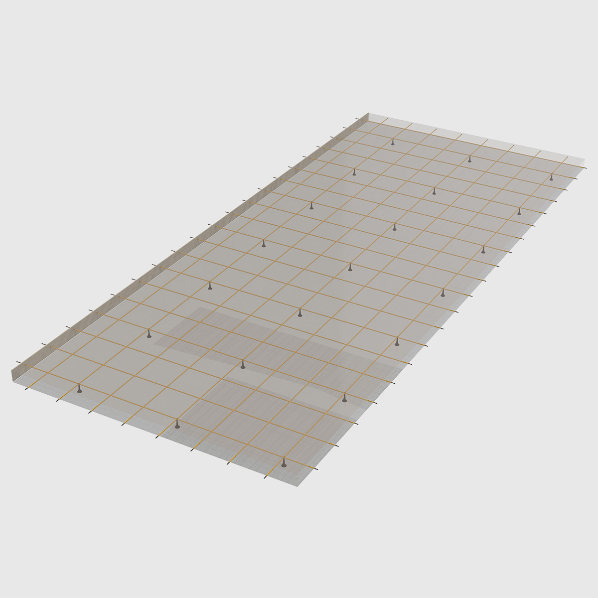 Los pisos post tensados por medio de cables comprimen el hormigón logrando pisos sin cortes, se construyen en fajas angostas y se utilizan principalmente para zonas de tránsito definido. Al ejecutarse sobre guías rígidas permiten controlar de manera muy precisa la nivelación y con esto construir pisos de alta planimetría